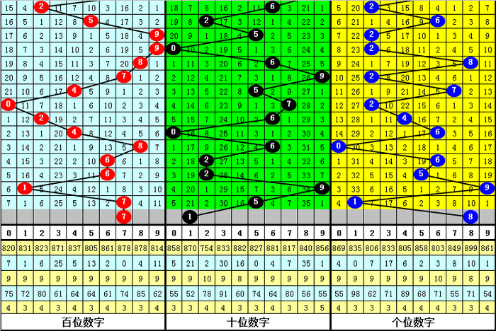 和尾分析:第262期历史同时开奖中,奖号和尾出现频次分辩为:和尾6出现4次,和尾2、3、4、5、8出现3次,和尾0、7出现2次,和尾1、9出现0次,其中庸尾奇偶比为8:15,大小比为12:11,012路比为9:5:9,本期看好开出偶和尾,精选和尾6。