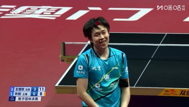 第四场,由王楚钦对阵许昕。最终,王楚钦相似直落三局以3比0的比分投诚许昕,为北京队锁定胜局,三局比分诀别为11比8、12比10、11比8。