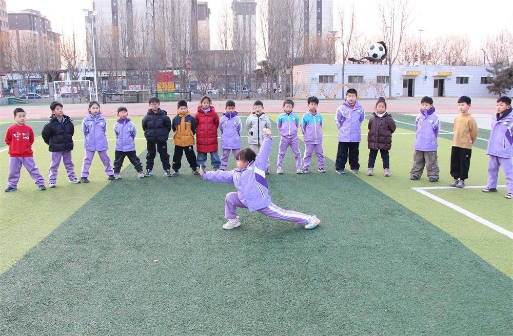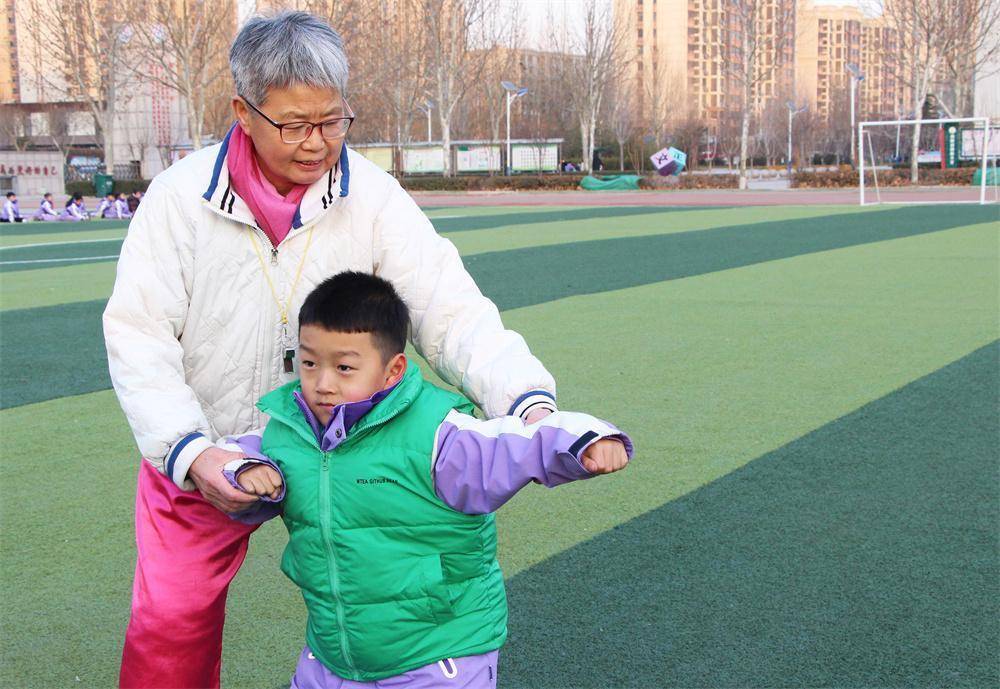 1月21日,在高阳县西街小学操场,常敏杰赤诚手把手教孩子学习技击。杨瀰摄1月21日下昼,在河北省高阳县西街小学操场上,50余名学目生成两组,折柳随着常敏杰、周彦两位技击醉心者开展技击社团举止,“一、二、三、四……”孩子们训练技击时的标语声振荡在操场上空。