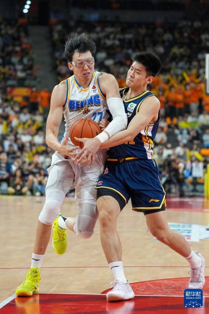 3月27日,北京北汽队球员赵睿(左)在比赛中紧迫。