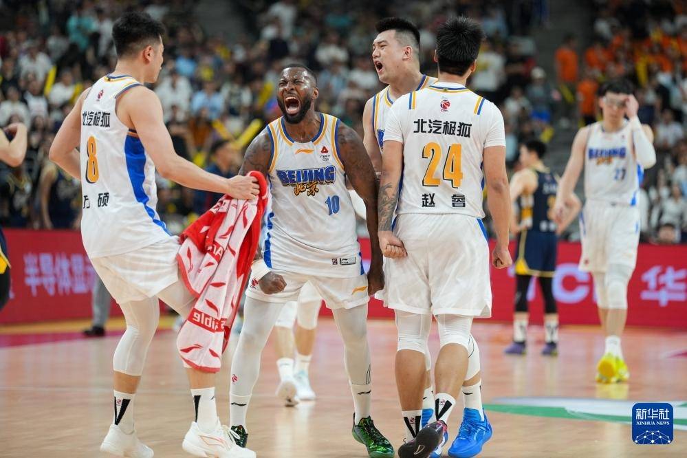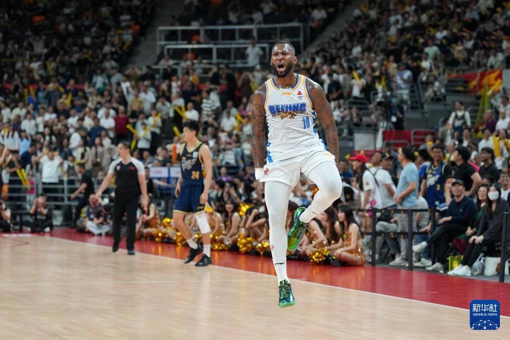3月27日,北京北汽队球员杰曼插足绝杀球后庆祝凯旋。